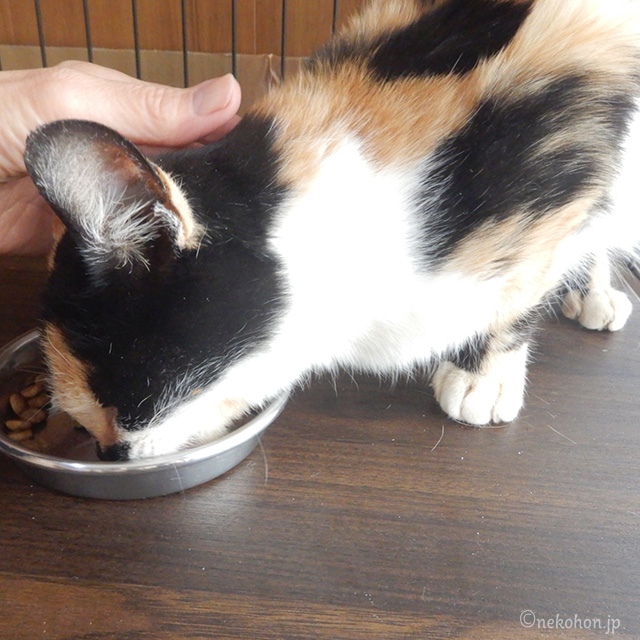 三毛猫もみじ、人馴れ訓練中