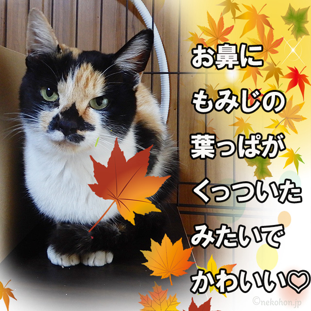 2025年11月の紅葉の季節にあらわれた極彩色の三毛猫さんなので「もみじ」と名付けました。